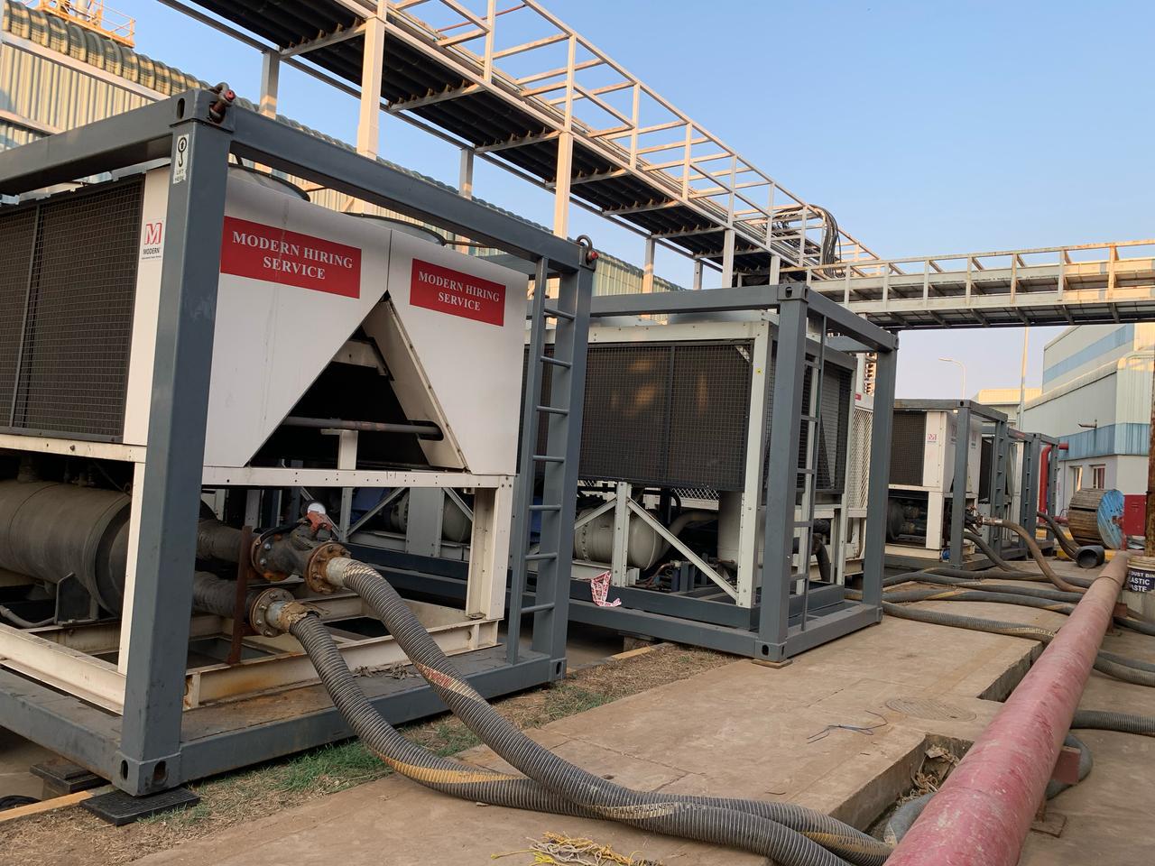 Modern Hiring Service supplied a 34 TR air-cooled chiller under a long-term rental agreement to support the client’s critical manufacturing processes. The rental contract has been in continuous operation for over eight years, and the equipment remains fully functional to date.